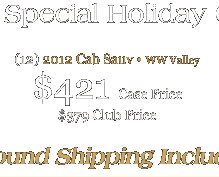 *Offer valid on 12-bottle cases of the two featured wines when shipped within the continental U.S. thru 12/31/15. Shipping to AK & HI discounted to $74/case.